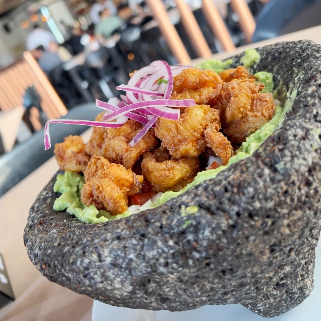 Camarones + salsa roca + col morada + cebollín + ajonjoli negros. 195